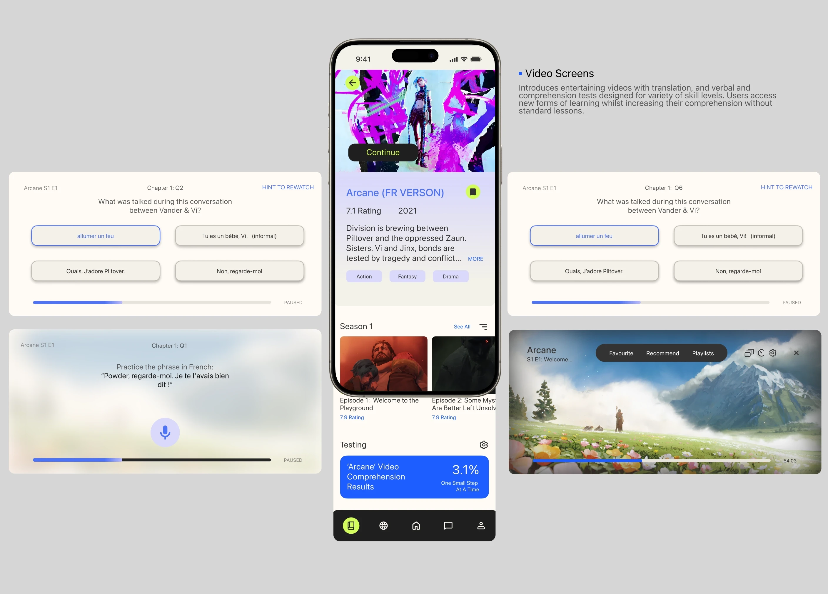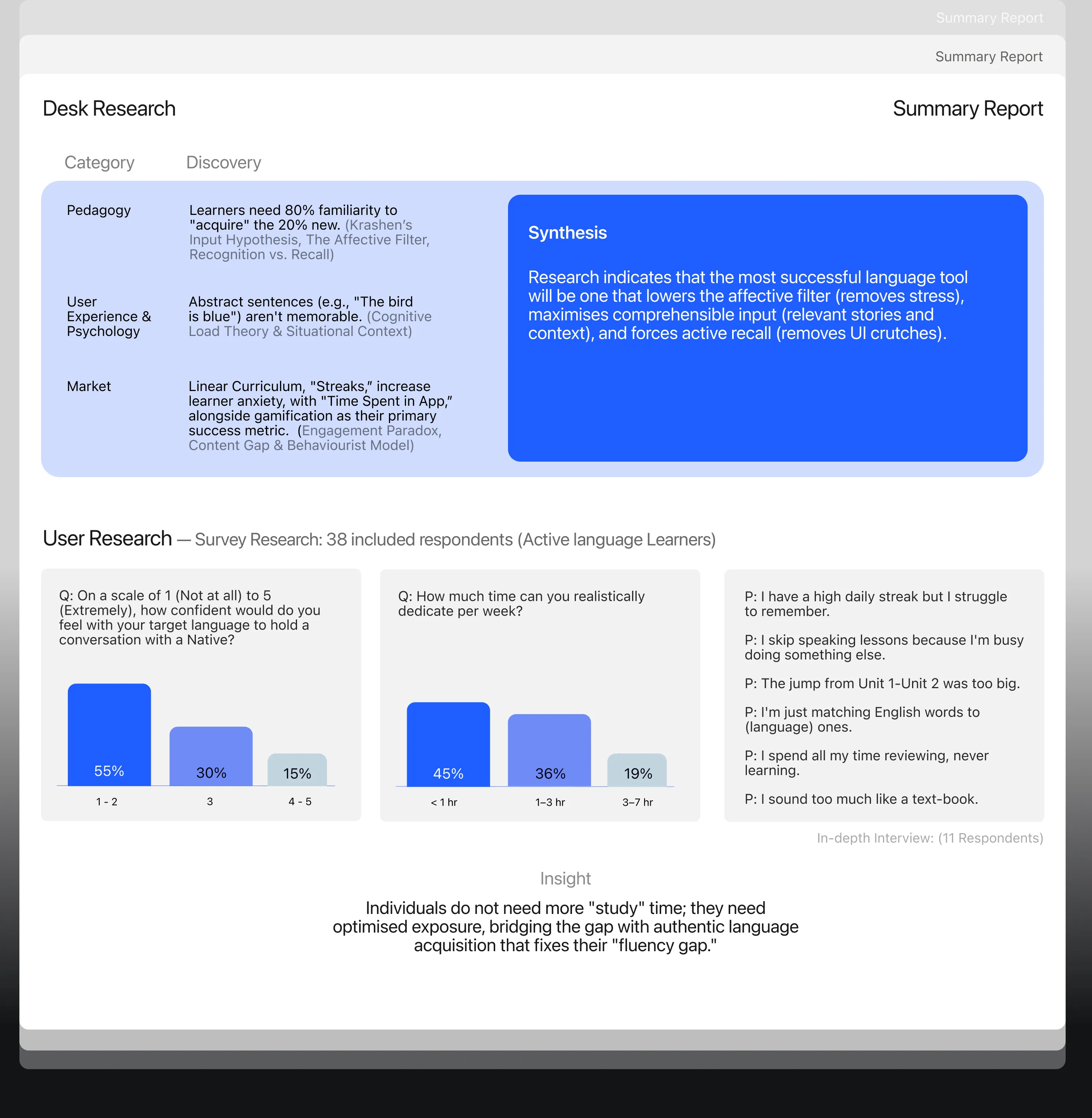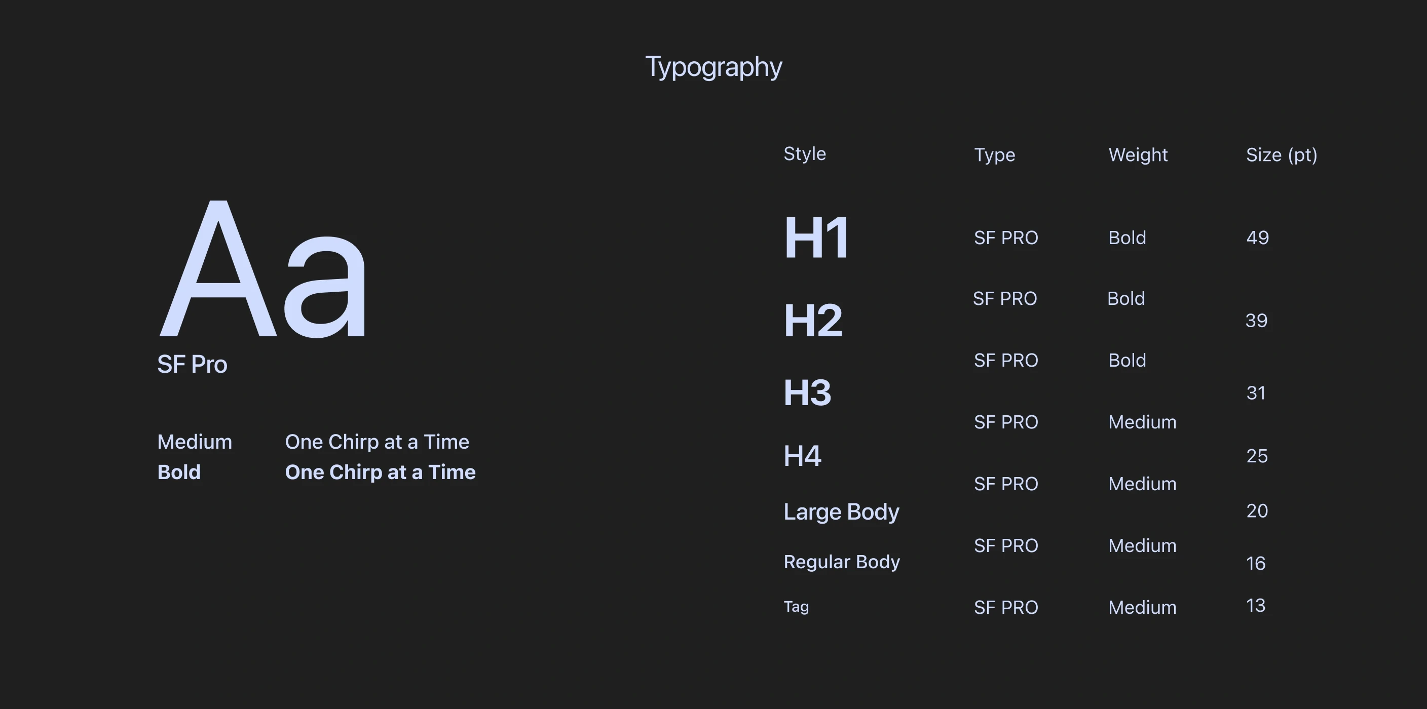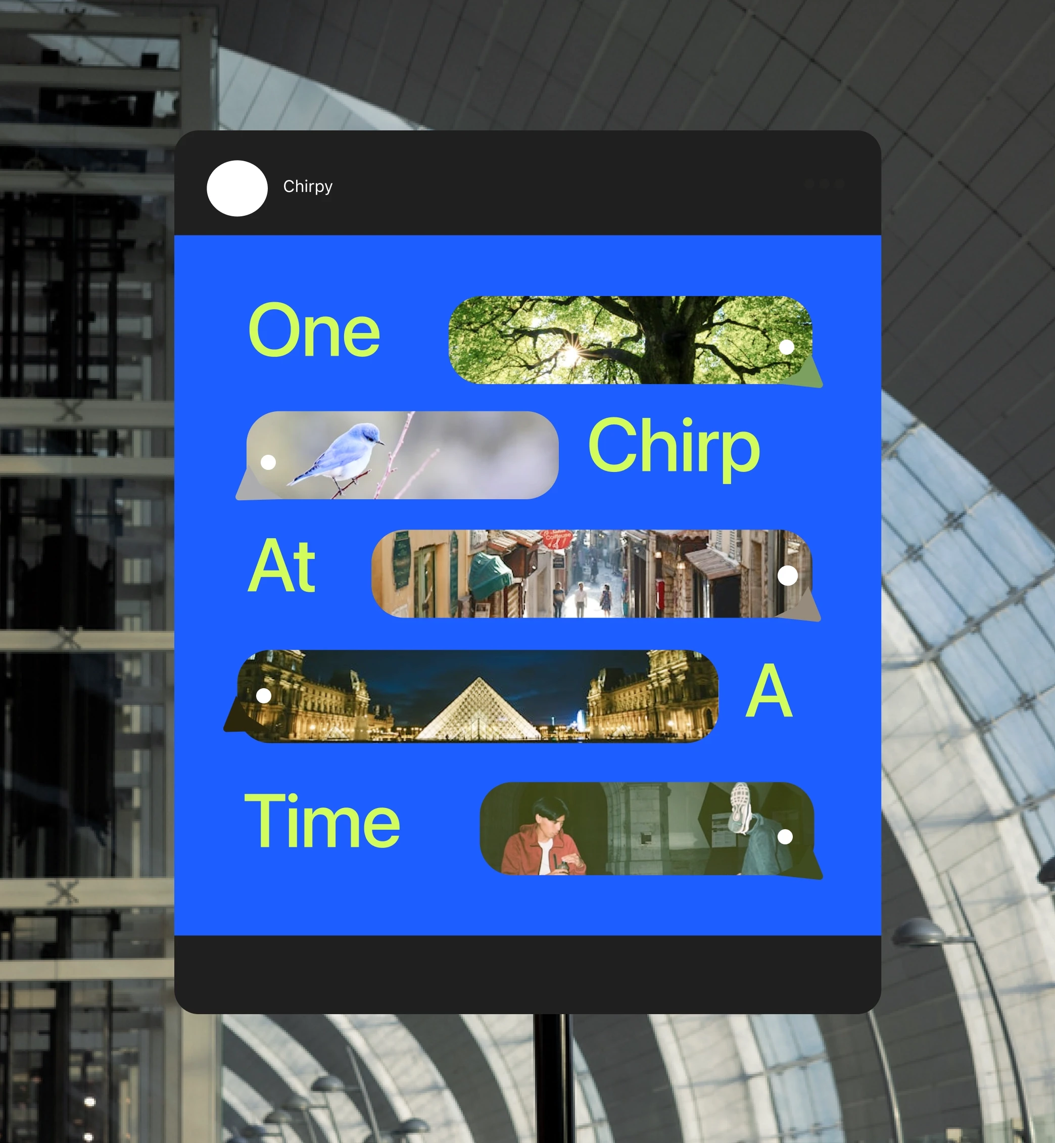 Chirpy is designed to bridge the gap of natural acquisition (spontaneous speaking), than explicit learning (memorisation). This project focuses on building an app with language acquisition practices, specifically testing French. It displays a clean san-serif typeface and minimalistic-modern visuals representing the academic and scientific approach to language acquisition.